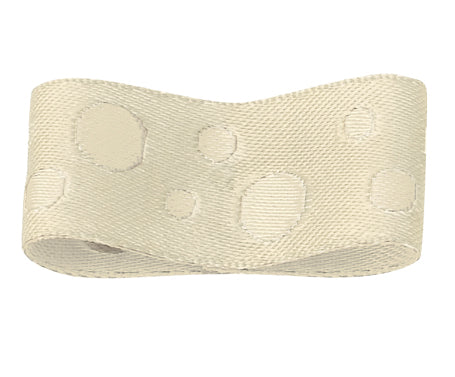 大小の水玉をランダムに配置し、2色でポップに織り上げたリバーシブル水玉サテンリボン。配色が表面と裏面で逆になっているので、両面が共に見えるように使用して頂ければ、よりカラフルになります。幅は15mmと25mmの2種類ですが、水玉の大きさも異なりますので、印象も異なります。リボンでよりポップに飾りたい場合に使える楽しくなるリボンです。